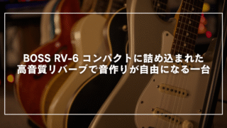 BOSSのRV-6は、コンパクトな筐体にRoom、Hall、Plate、Springといった定番から、幻想的なShimmer、演奏に合わせて深さが変わるDynamic、さらにリバーブとディレイを同時に得られる+DELAYまで、合計8種類のリ...