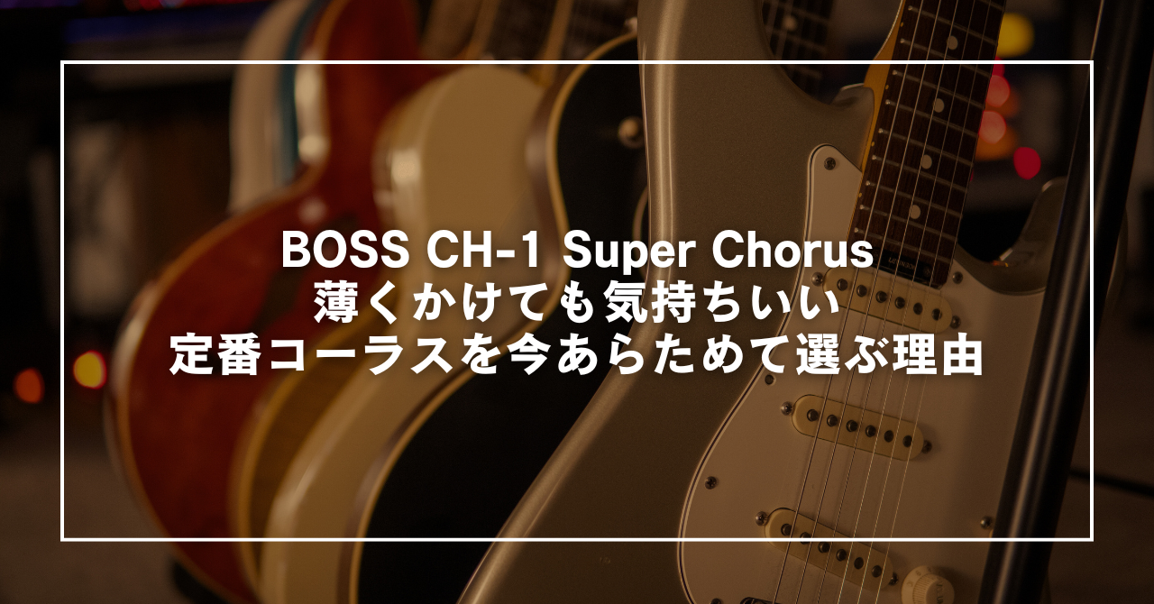 この記事でご紹介するのは「BOSS CH-1 Super Chorus」です。派手に揺らして主役になるタイプというより、クリーンにも歪みにも“少し広がりを足す”のが上手い、実用寄りのコーラスですね。