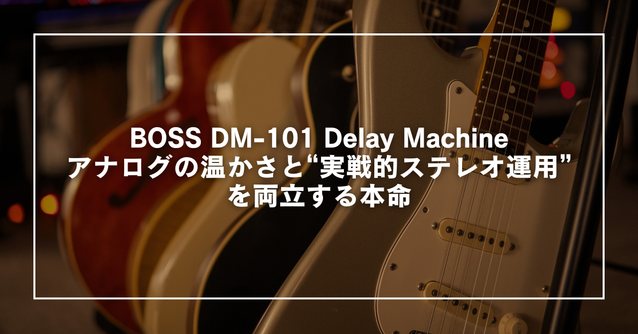 というのもDM-101は、単に「アナログで温かいディレイ」では終わらないからです。BOSS公式では、フル・アナログ設計のディレイ回路をデジタル制御で扱いやすくしたモデルと案内されており、アナログらしい飽和感を残しつつ、ステレオ運用やメモリー、MIDIまで踏み込めるのが大きな特徴です。この記事では、DM-101の基本的な特徴、12モードで何ができるか、既存のBOSSディレイとどう使い分けるか、そして導入前に知っておきたい注意点をシンプルに整理します。